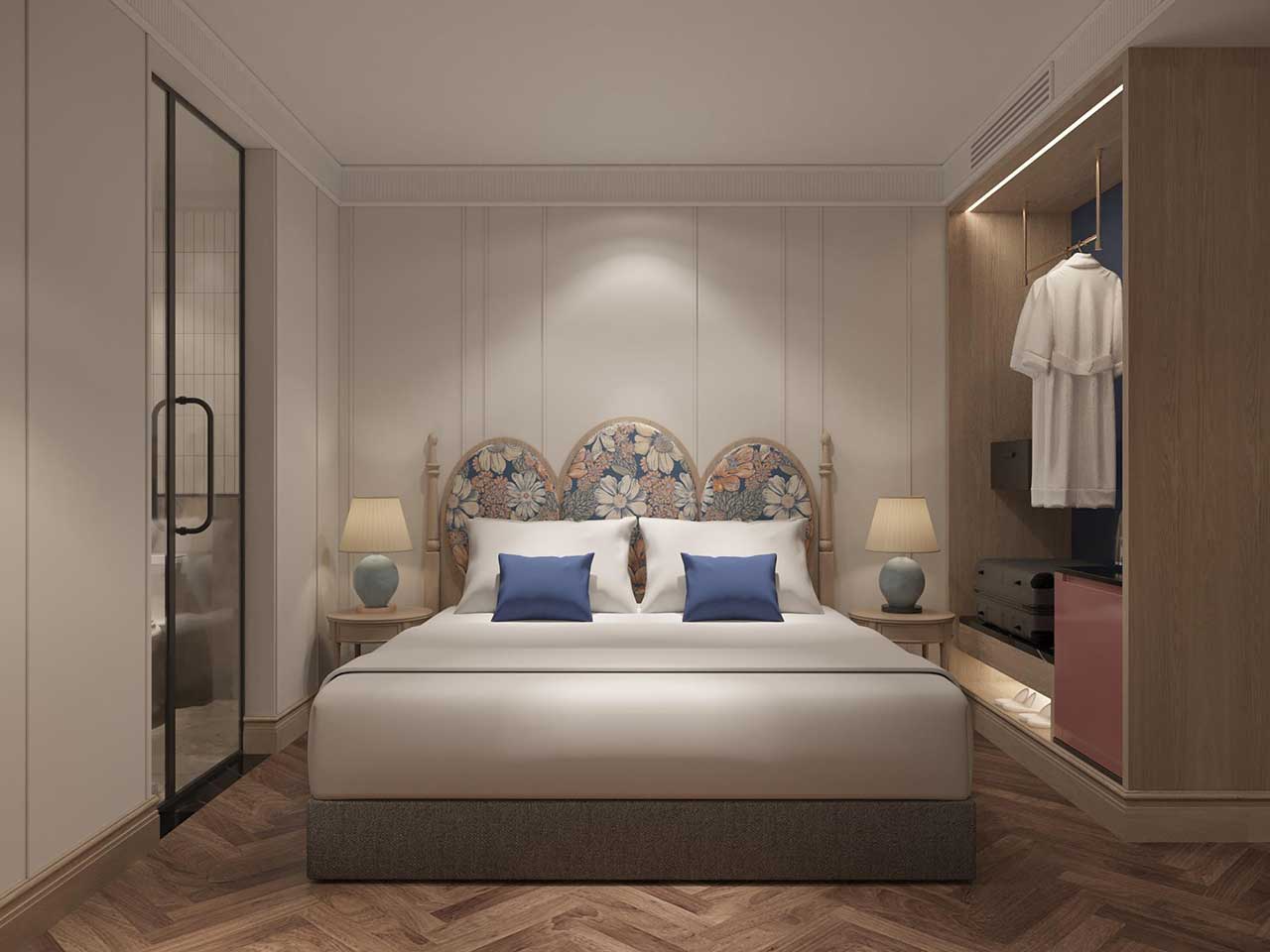 A comfortable room with modern amenities and natural daylight, providing a pleasant space to relax after exploring the city.
